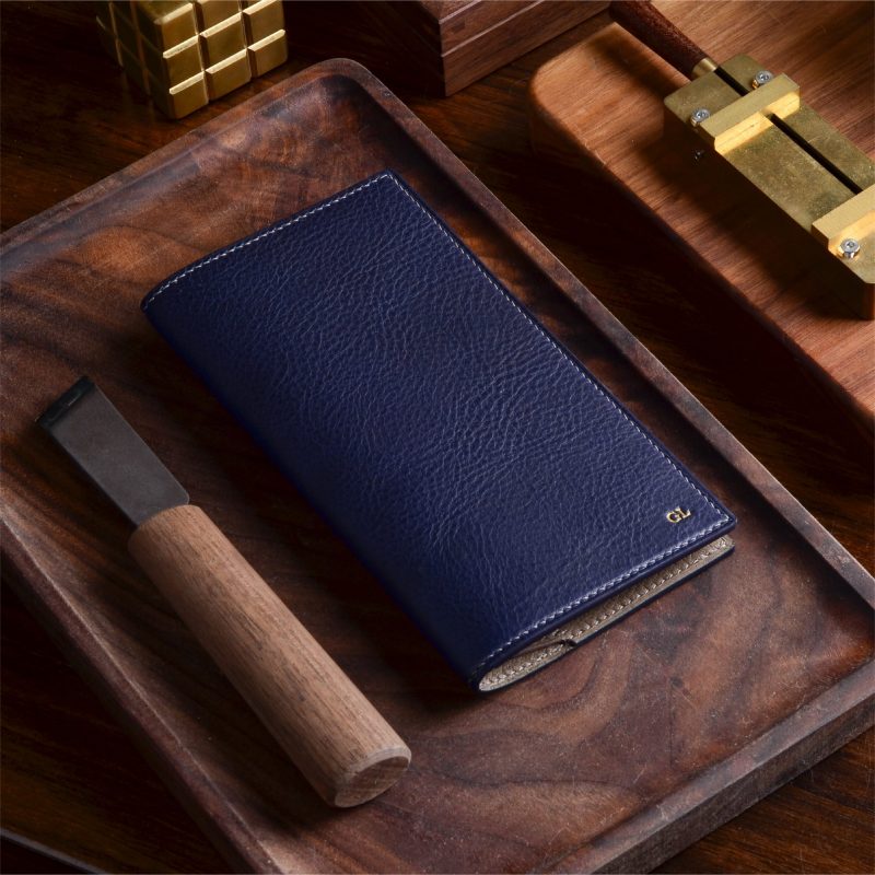 Navy Blue Vegetable Tanned Leather with Grey Linen Thread